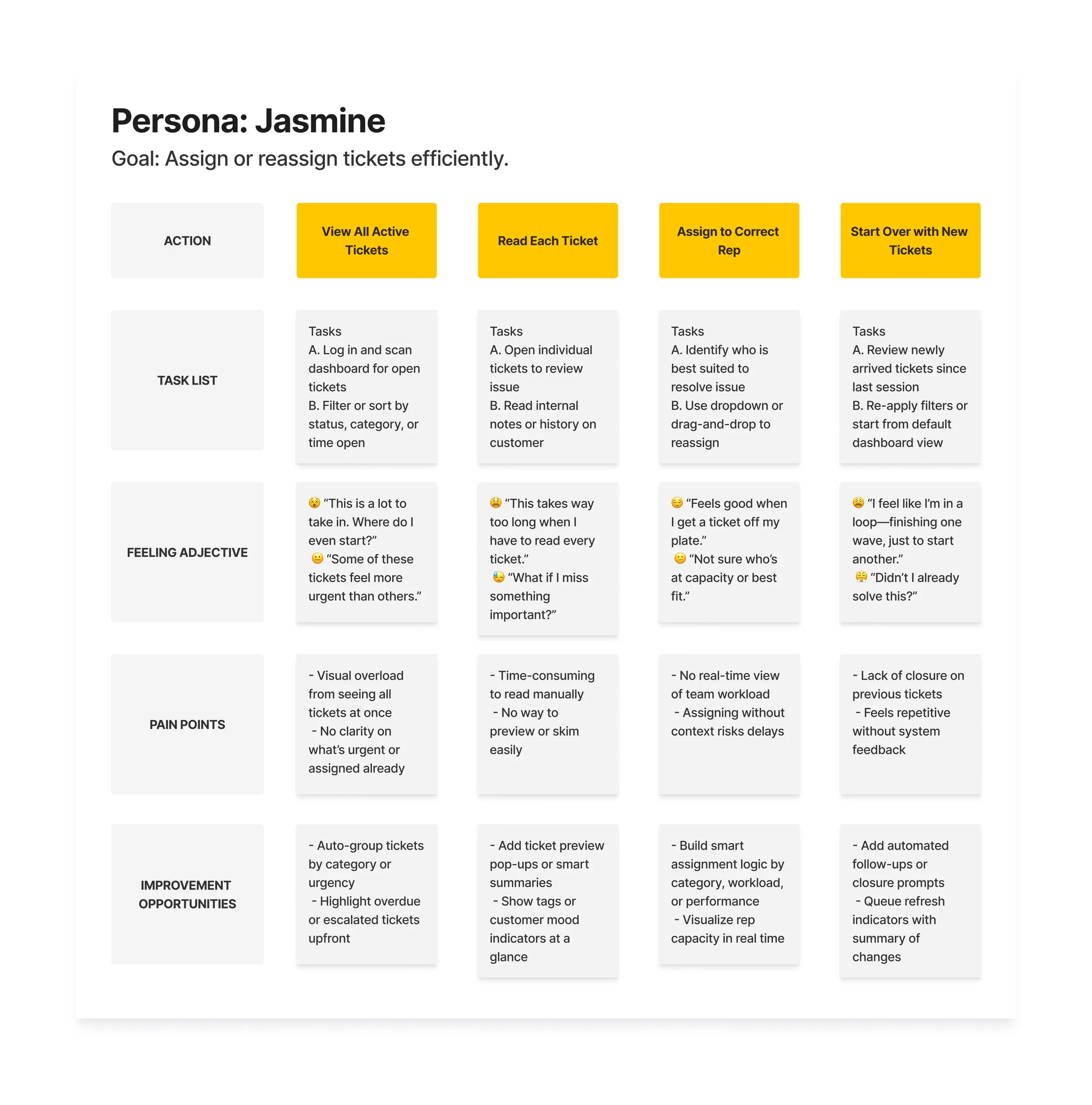 [+] Drill-down icon opens full-screen ticket view so Jasmine can quickly get “into the weeds” when needed